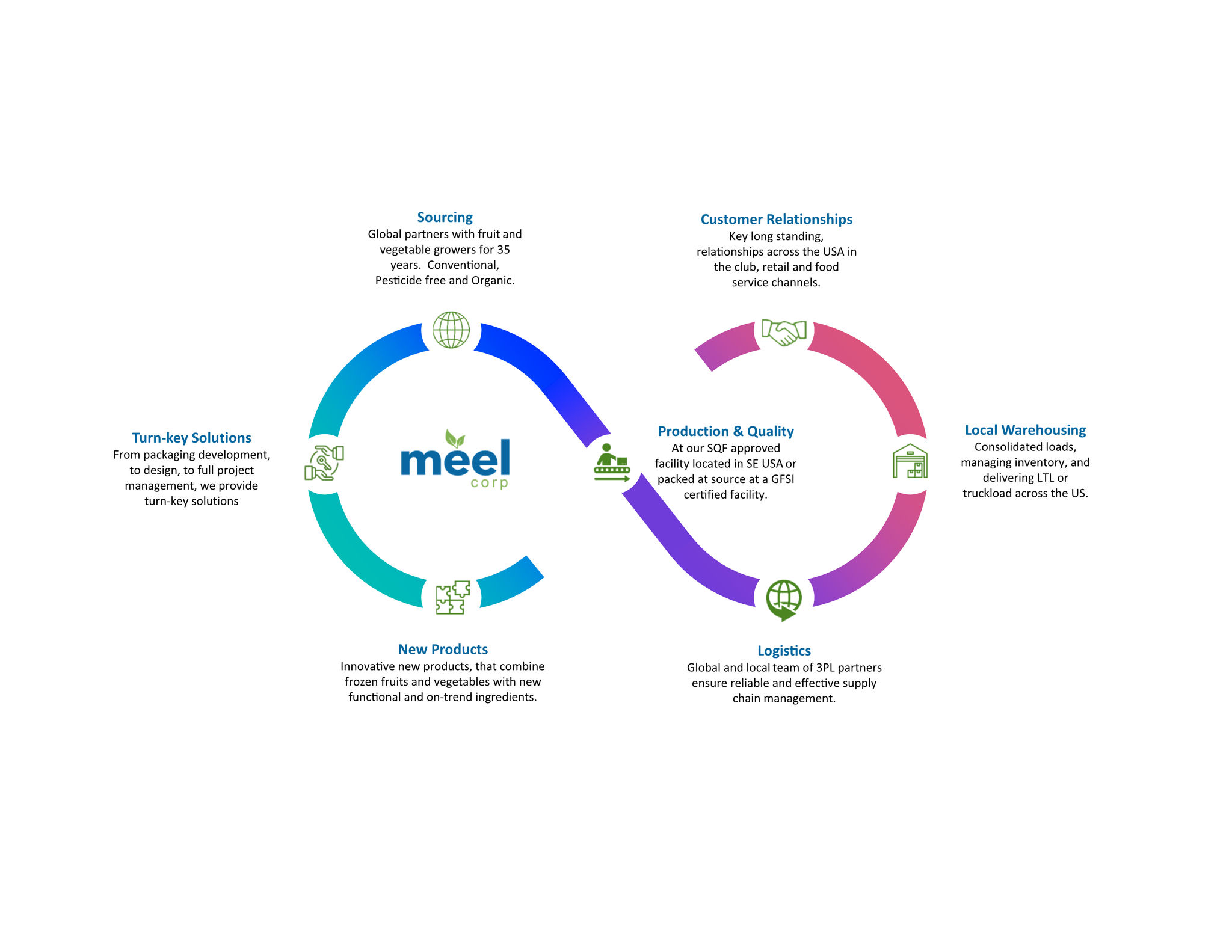 At meelcorp we're proud to source, package, and deliver a wide array of high quality commodity and specialty food items. We get you what you need, when you need it, no matter how unique the product or short the lead time.